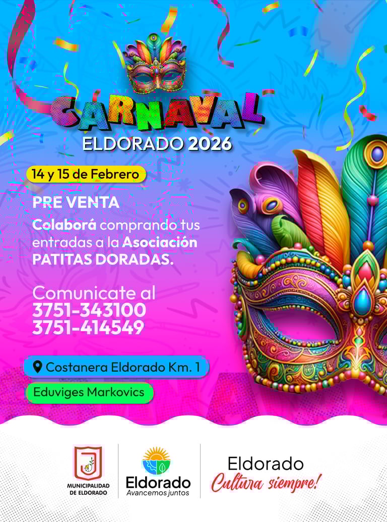Desde el Municipio se invita a toda la comunidad a acompañar esta gran celebración popular, reafirmando el compromiso de seguir promoviendo la cultura, el trabajo conjunto y el encuentro de las familias eldoradenses.