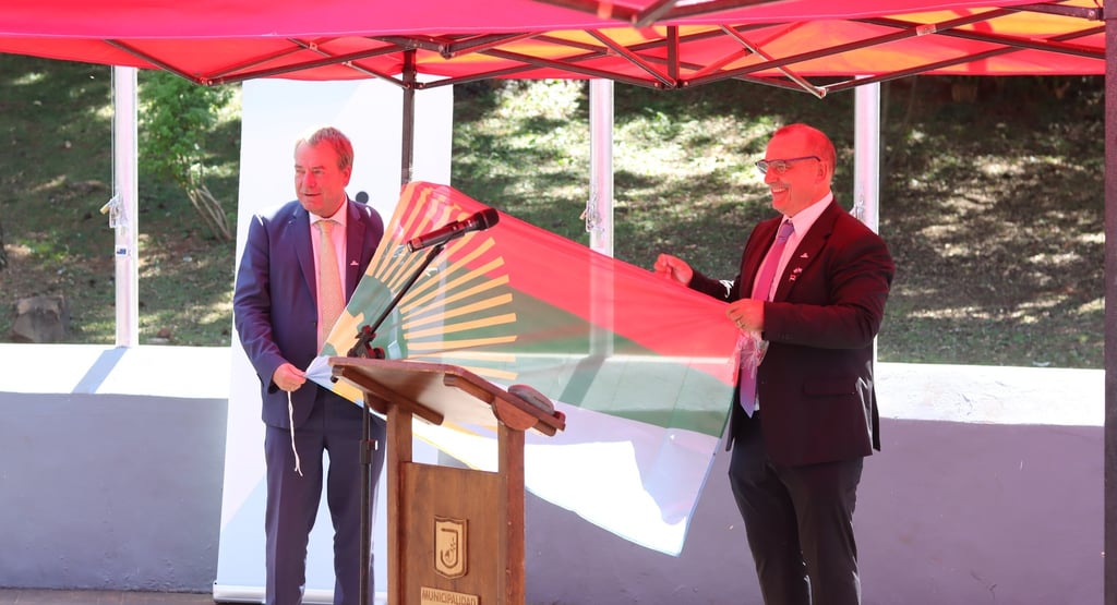 El evento contó con la presencia del Embajador de la República Federal de Alemania, Dr. Dieter Lamlé, acompañado por el Intendente de la ciudad Eldorado, Dr. Rodrigo Durán, la Viceintendente, Dra. Lorena Cardozo; la Cónsul Honoraria de la República Federal de Alemania en Eldorado, Dra. Renata Wachnitz, autoridades locales y miembros de la comunidad.