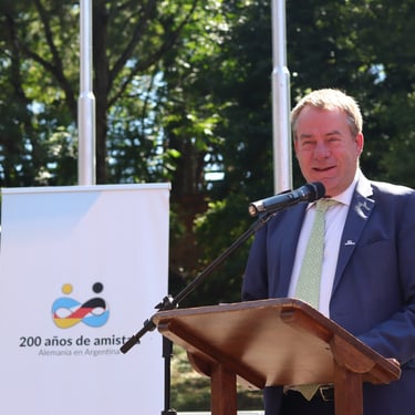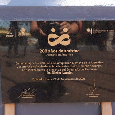 Como parte del acto, se realizó el descubrimiento de una placa conmemorativa por los 200 años de amistad y cooperación entre Alemania y Argentina, y la plantación de un árbol simbólico, en homenaje a las raíces y el legado de quienes llegaron al país hace dos siglos.