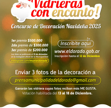 Desde la Municipalidad de Eldorado y la Cámara de Comercio se invita a todos los comercios de la ciudad a sumarse y ser parte de esta propuesta, que pone en valor la creatividad, el trabajo y la identidad navideña de la ciudad.
